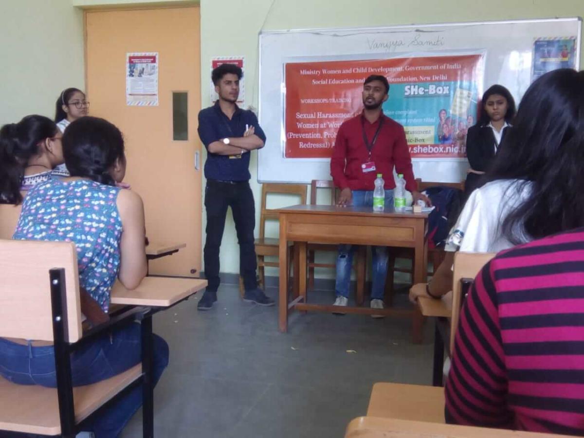 All over the year “Sexual Harassment project has taken place at different places and time in Delhi. In 2018, this programme covered Bindapur (Nawada) and Bharti College (Janakpuri). In 2019, it took place in Dr. BhimRaoAmbedkar College and Delhi Metropoliton Education (Noida Sector-62). This project was run by The Ministry of Women Child and Development Govt. of India. Mukul, Nabira Farman, Jasmine Siddiqui and Diksha were the interns who handled the programme successfully. In this programme the students were made aware about their rights according to the Sexual Harassment Act, 2013. Approximately 486 students benefitted from this programme.